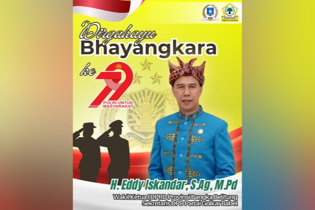 Wakil Ketua DPRD Provinsi Kepulauan Bangka Belitung, Eddy Iskandar, menyampaikan apresiasi dan ucapan selamat kepada seluruh jajaran Kepolisian Republik Indonesia, khususnya Polda Kepulauan Bangka Belitung yang sedang merayakan Hari Bhayangkara ke-79.